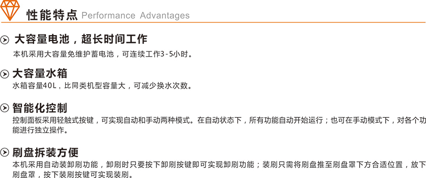 適用范圍:設計新穎,外觀(guān)時(shí)尚,操作便捷,具備自動(dòng)裝、卸刷功能,極小的轉彎半徑,在狹窄的區域和角度內也可輕松作業(yè),廣泛適用于小型商場(chǎng)及辦公場(chǎng)所等。