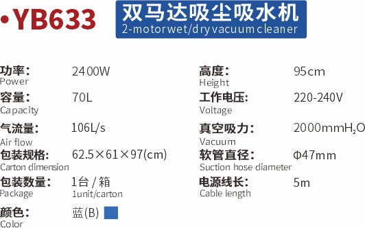 YB633吸塵吸水機(70L)