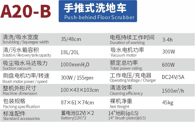 白云A20-B 手推式洗地車(chē)