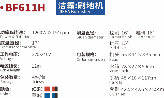 -具有洗地、洗地毯、起蠟、低速拋光等四大功能,能同時(shí)滿(mǎn)足顧客的多種清潔需要。